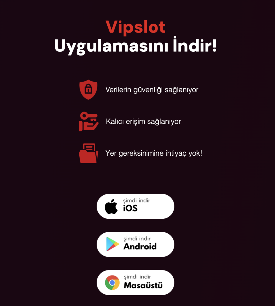 Vipslot’un mobil uygulaması, kullanıcıların diledikleri yerden hızlı ve pratik şekilde erişim sağlaması için geliştirilmiştir. Ücretsiz olarak indirilebilen uygulama sayesinde erişim engellerinden etkilenmeden, hızlı açılan sayfalarla kesintisiz bir deneyim yaşayabilirsiniz.